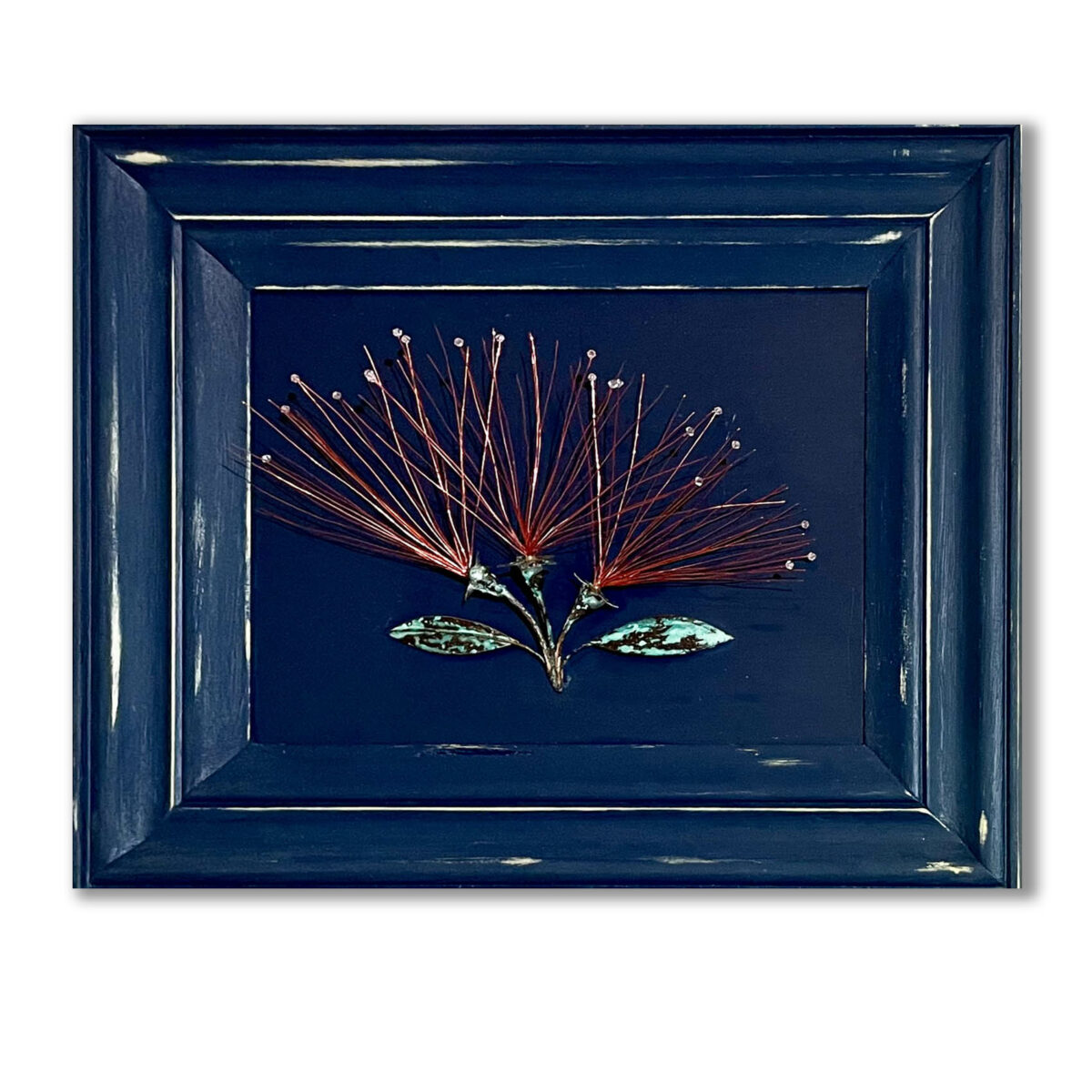 - Homemade, wall hung pine frame painted (distressed) navy blue – contact artist for specific colour requests